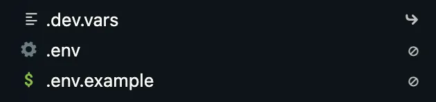 SECRET_KEY = "value";API_TOKEN = "ABCDEFGHIJKLMNOPQRSTUVWXYZ";Cloudflare uses .dev.vars, however, .env is the typical approach. Therefore, when you run pnpm dev, RedwoodSDK will automatically create a symlink from .env to .dev.vars.