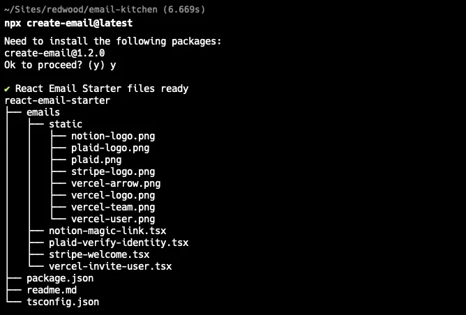 This will create a new directory called react-email-starter.